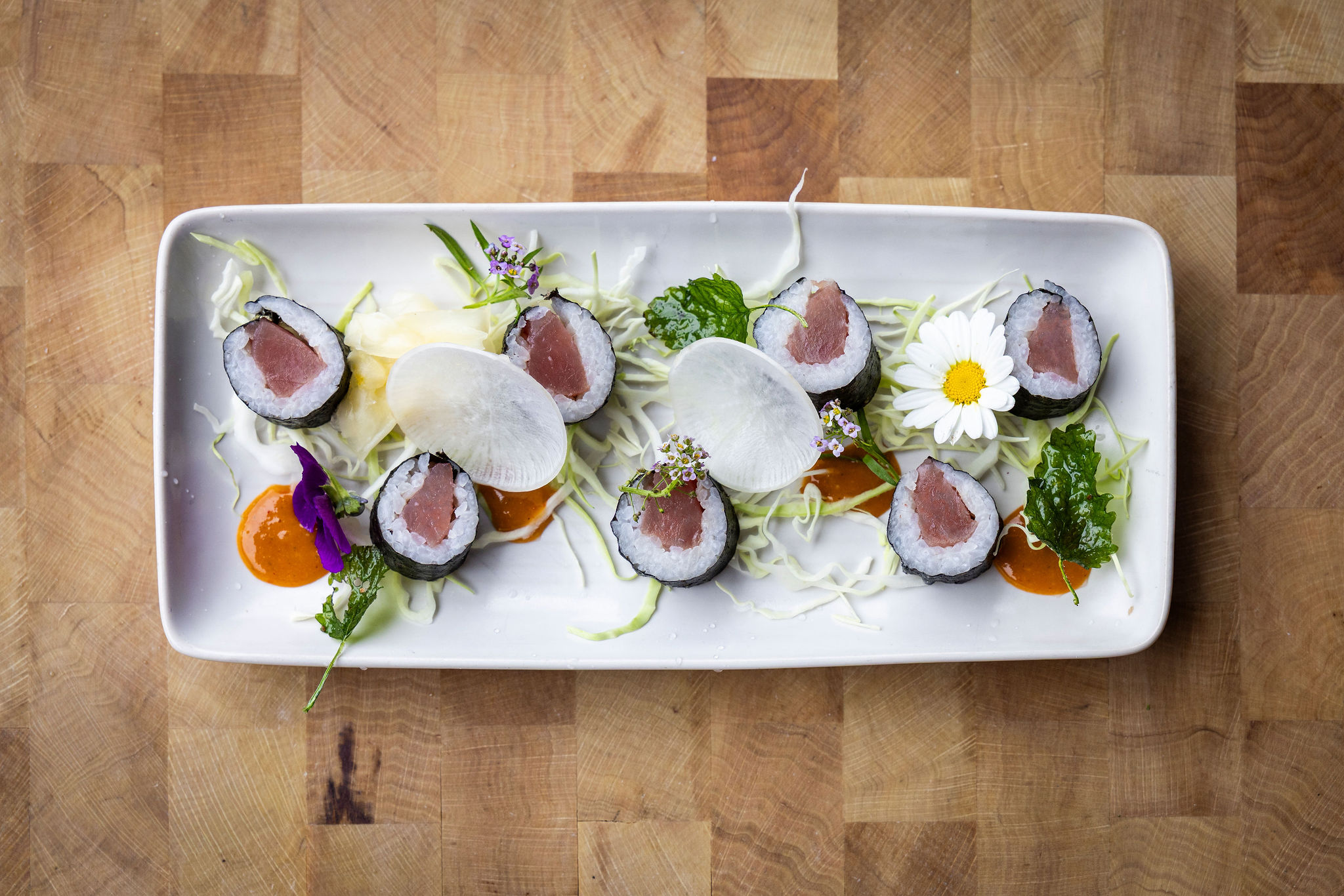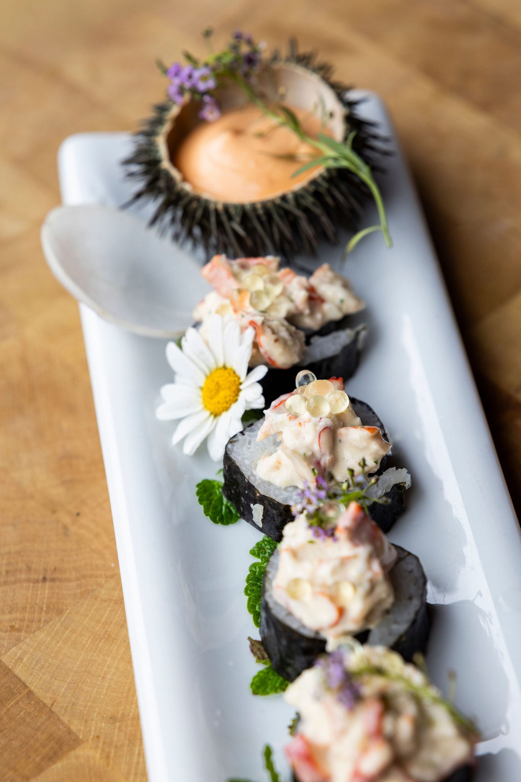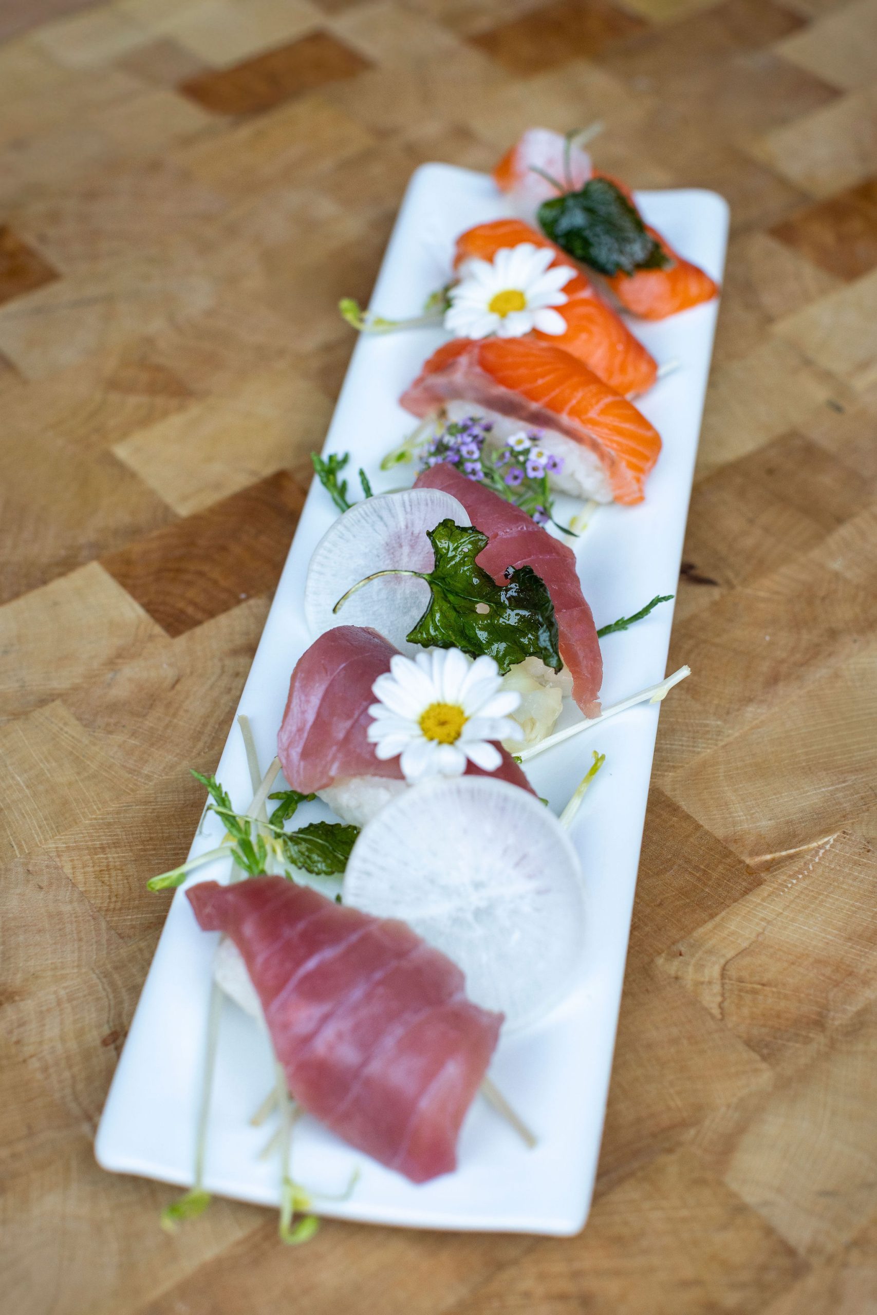 Unsere Speisekarte umfasst Maki, Nigiri, Sashimi und Signature-Kreationen mit Fisch aus den Schweizer Alpen, aromatischen Kräutern und saisonalen Zutaten.